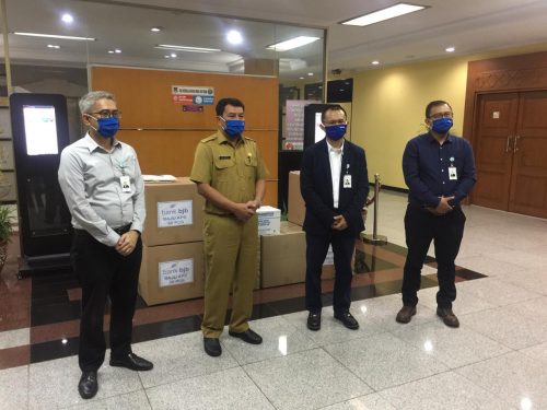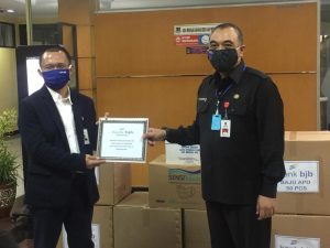 TANGERANG – bank bjb kembali melakukan aksi korporasi dalam rangka mendorong percepatan penanganan COVID-19 di tanah air. Setelah serangkaian bantuan yang sebelumnya dilakukan, kali ini sumbangsih perseroan ditunjukan dalam bentuk penyerahan 1.500 alat pelindung diri (APD) kepada Pemerintah Kabupaten Tangerang, Provinsi Banten.