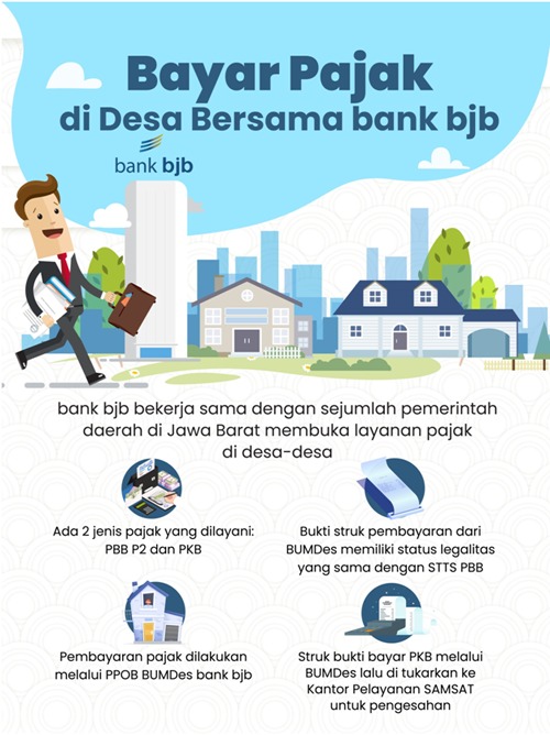 Terdapat dua jenis pajak yang bakal dilayani BUMDes, yakni Pajak Bumi dan Bangunan Perdesaan dan Perkotaan (PBB-P2) dan Pajak Kendaraan Bermotor (PKB) Provinsi Jawa Barat. Kehadiran opsi setoran pajak melalui BUMDes ini merupakan hasil kolaborasi antara bank bjb bersama pemerintah daerah.
