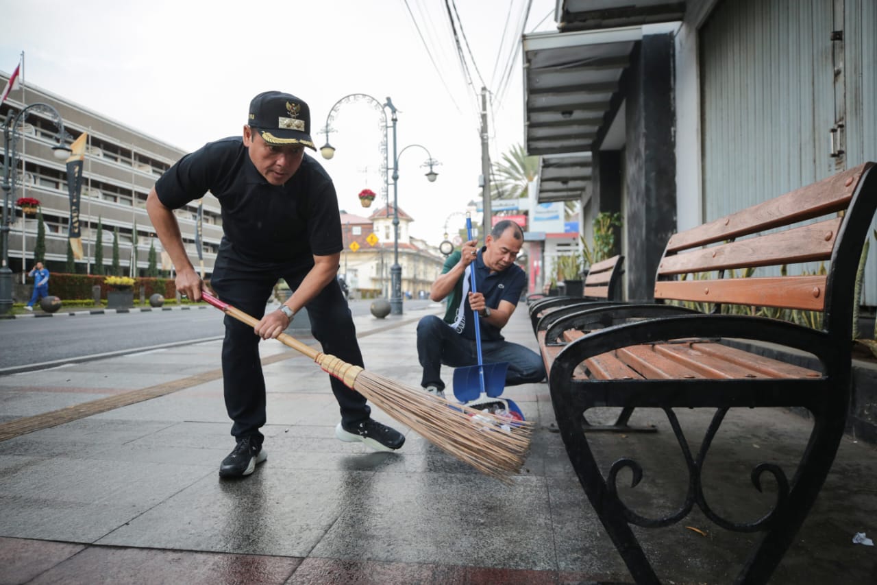 Buat Kamu kali ini dengan membersihkan trotoar di lima titik. Yaitu dari Asia Afrika – Otista – Dalem Kaum – Alun-alun Timur – Tamblong.
