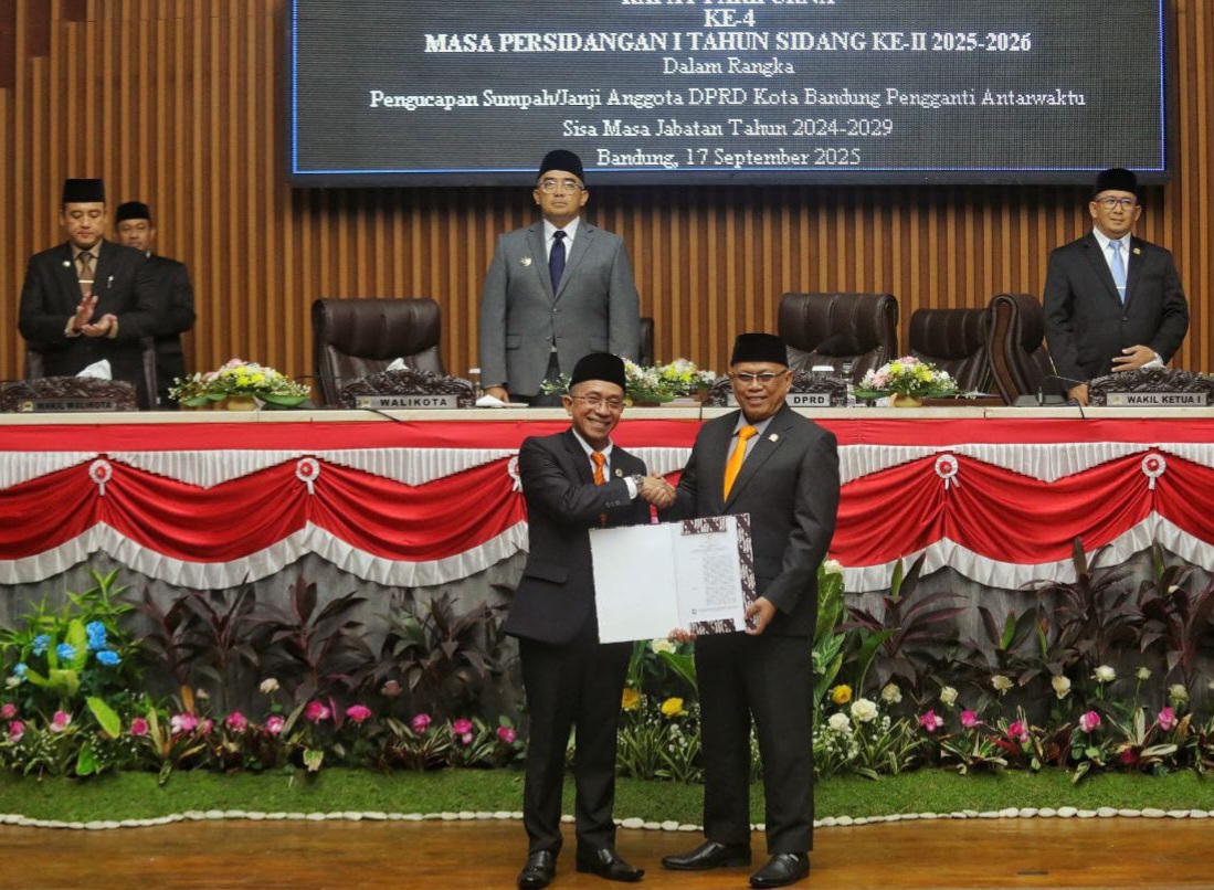 Usai pengucapan sumpah, prosesi dilanjutkan dengan penandatanganan berita acara, penyematan tanda keanggotaan DPRD, serta penyerahan Surat Keputusan Gubernur Jawa Barat.