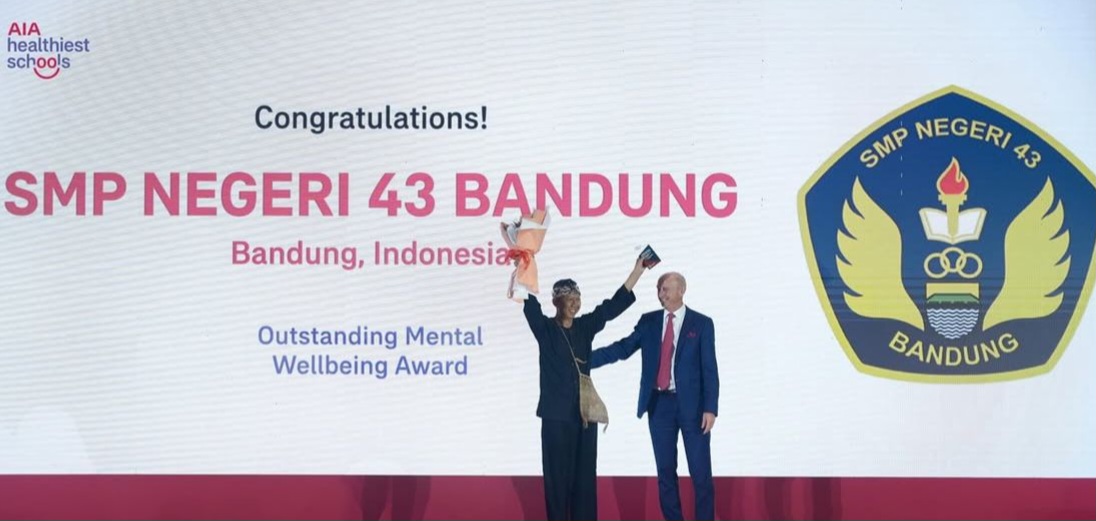 Jurnal7.com|Bandung – SMP Negeri 43 Kota Bandung sukses mengharumkan nama Indonesia di kancah internasional. Sekolah ini berhasil meraih penghargaan bergengsi AIA Outstanding Mental Wellbeing Award dalam ajang Kompetisi Sekolah Tersehat se-Asia Pasifik yang digelar di Da Nang, Vietnam, pada 3 Juli 2025.