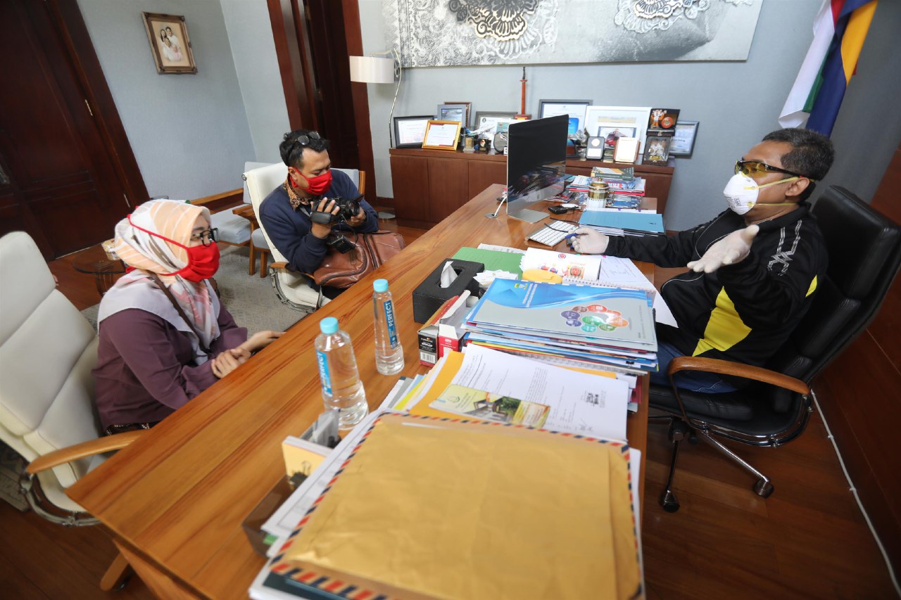 Ia tetap melaksanakan protokol kesehatan dengan memakai masker dan sarung tangan. Ia bahkan tak bersalaman, hanya menyapa kami dengan hangat satu per satu seperti biasanya.