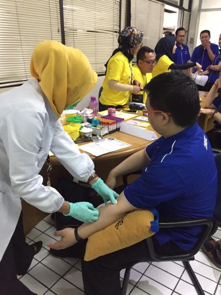 Dalam acara tersebut Prodia memberikan gratis Check-up bagi karyawan usia 25-35 tahun berupa pemeriksaan yakni glukosa sewaktu, kolesterol total dan pemeriksaan fungsi hati.